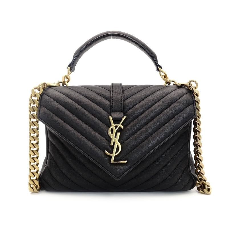 > サンローラン SAINT LAURENT YSL カレッジ チェーン ショルダーバッグ ブラック レザー ロゴ 2way ゴールド金具 7-8-253