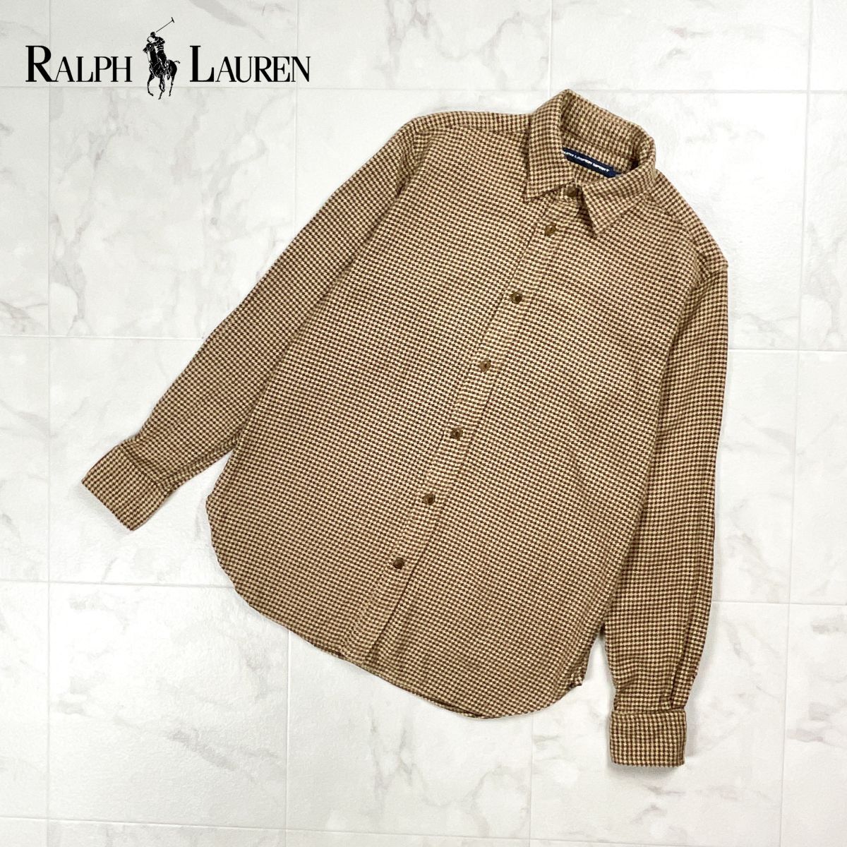 > 美品 RALPH LAUREN SPORT ラルフローレンスポーツ 千鳥柄シャツ カーフスエードエルボーパッチ 長袖 メンズ ブラウン 茶色 サイズS*GD339