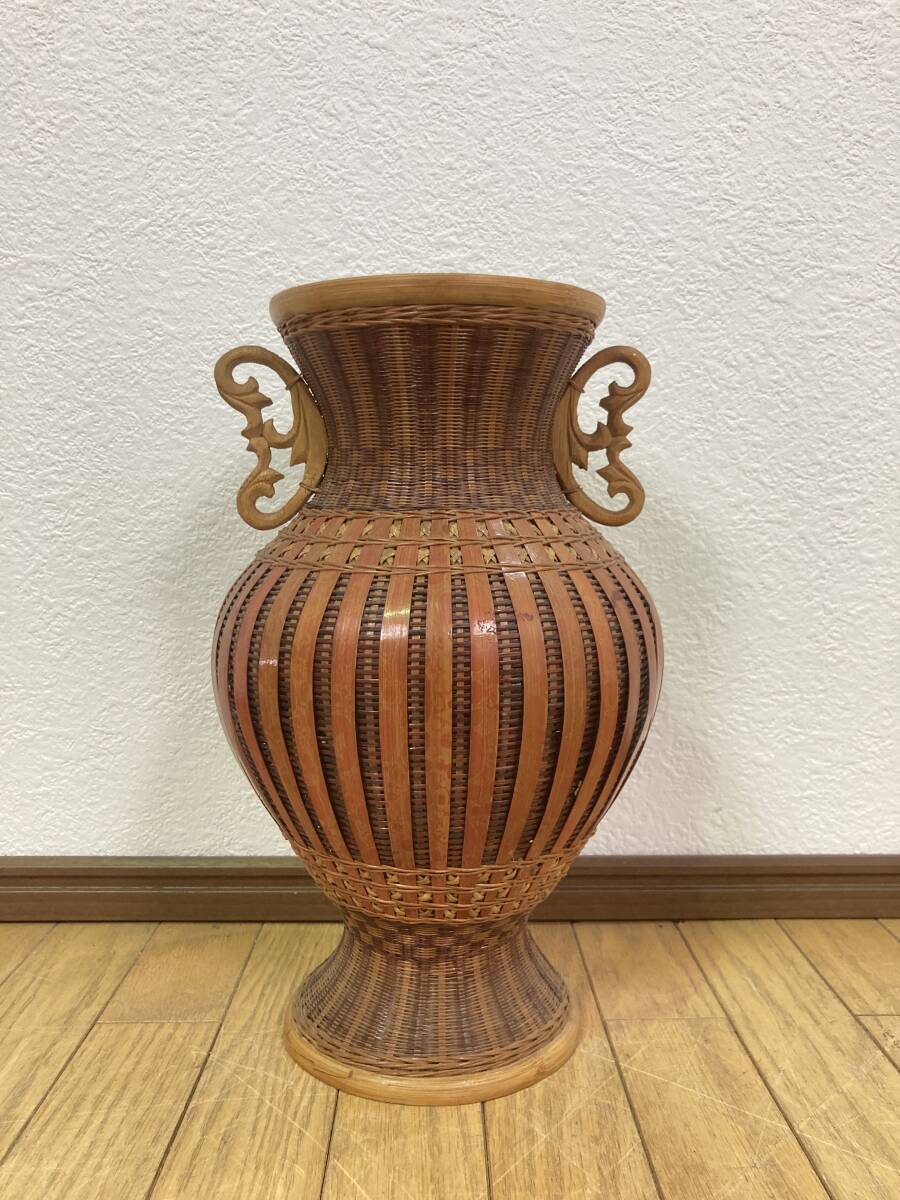 - ★竹細工★ 竹編大花瓶 竹籠 竹篭 花瓶 花器 花入 双耳 中国美術 置物 茶道具 古美術品 飾壷 竹壷 骨董品 激安 格安