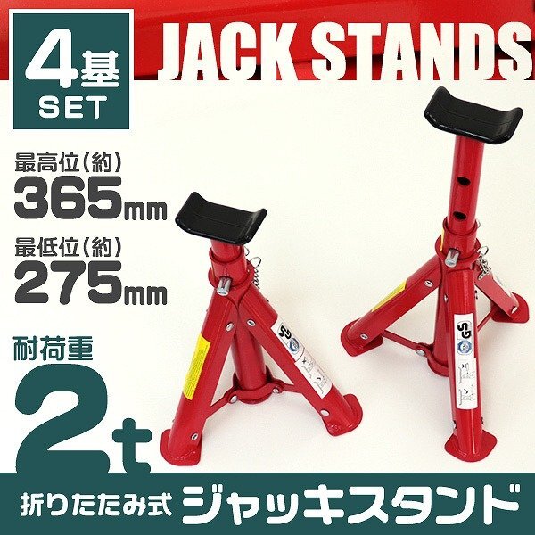 - 【4個セット】2t ジャッキスタンド 馬ジャッキ リジットラック 高さ3段階調整 コンパクト 収納 ゴムラバー付き タイヤ 交換 ジャッキアップ