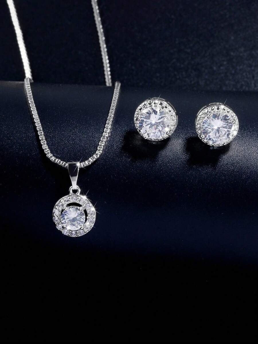 - ジュエリー レディース セット 3点セット キュービックジルコニア ラウンド ペンダントネックレス&ピアス レディースジュエリーセ