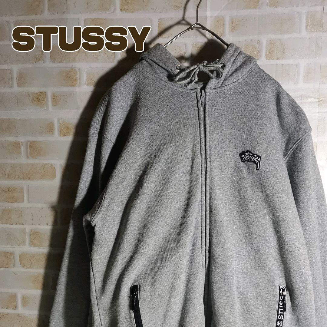 - STUSSY ステューシー パーカー グレー ジップアップ ワッペン 刺繍