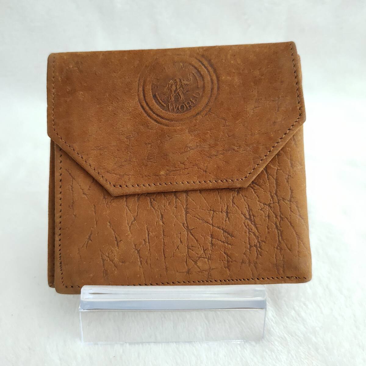 > 美品 希少 象革 二つ折り 財布 エレファントレザー ナチュラル ブラウン ELEPHANT GENUINE LEATHER 茶 ②