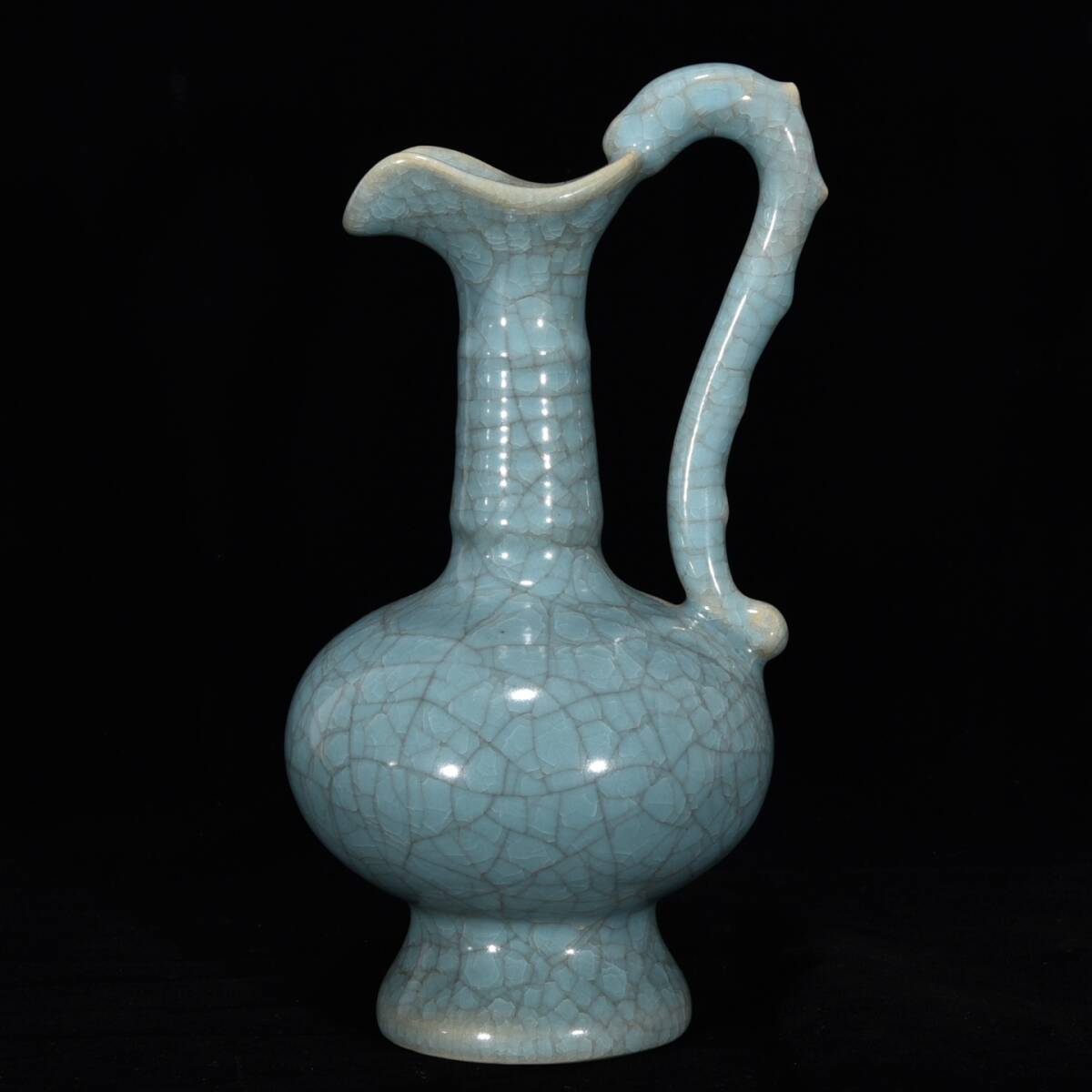 - A_YF0511【惠】人間国宝 中国骨董 陶芸 磁器【宋汝窯氷割れ花湯壺】工芸品 施釉陶 青花磁 陶芸 置物 收藏品