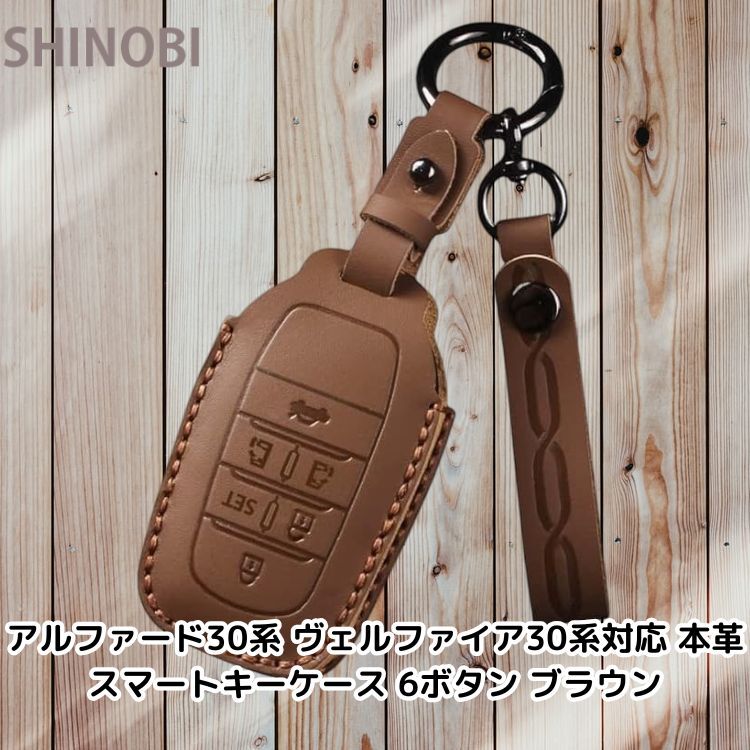 - アルファード30系 ヴェルファイア30系対応 本革スマートキーケース 6ボタン ブラウン