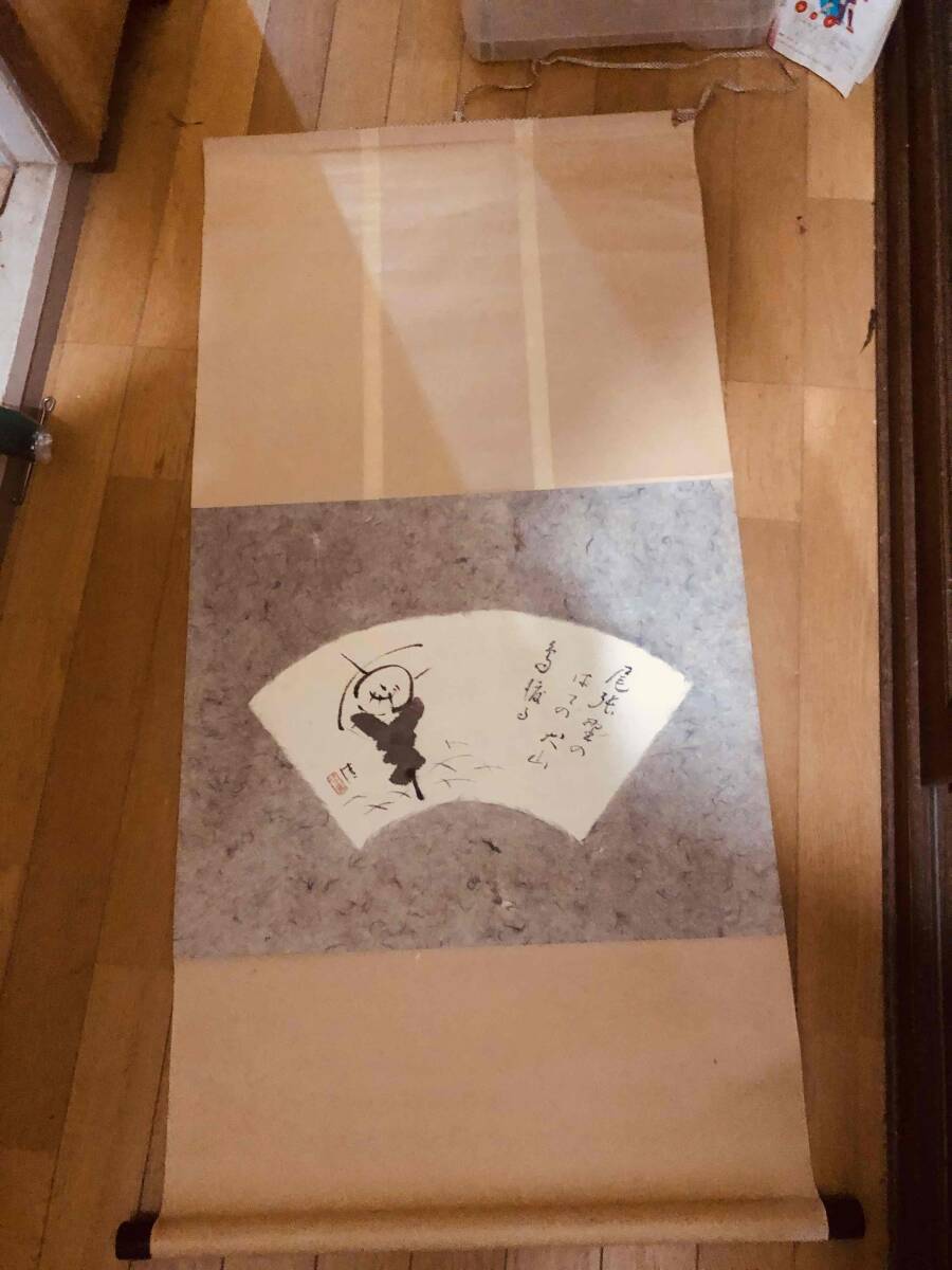 - 【掛軸】俳画/墨彩画 掛軸 「かかし」の図 肉筆 尾張? 書画 素朴 昭和レトロ 日本画 古美術 茶掛け 書画 和モダン 床の間に