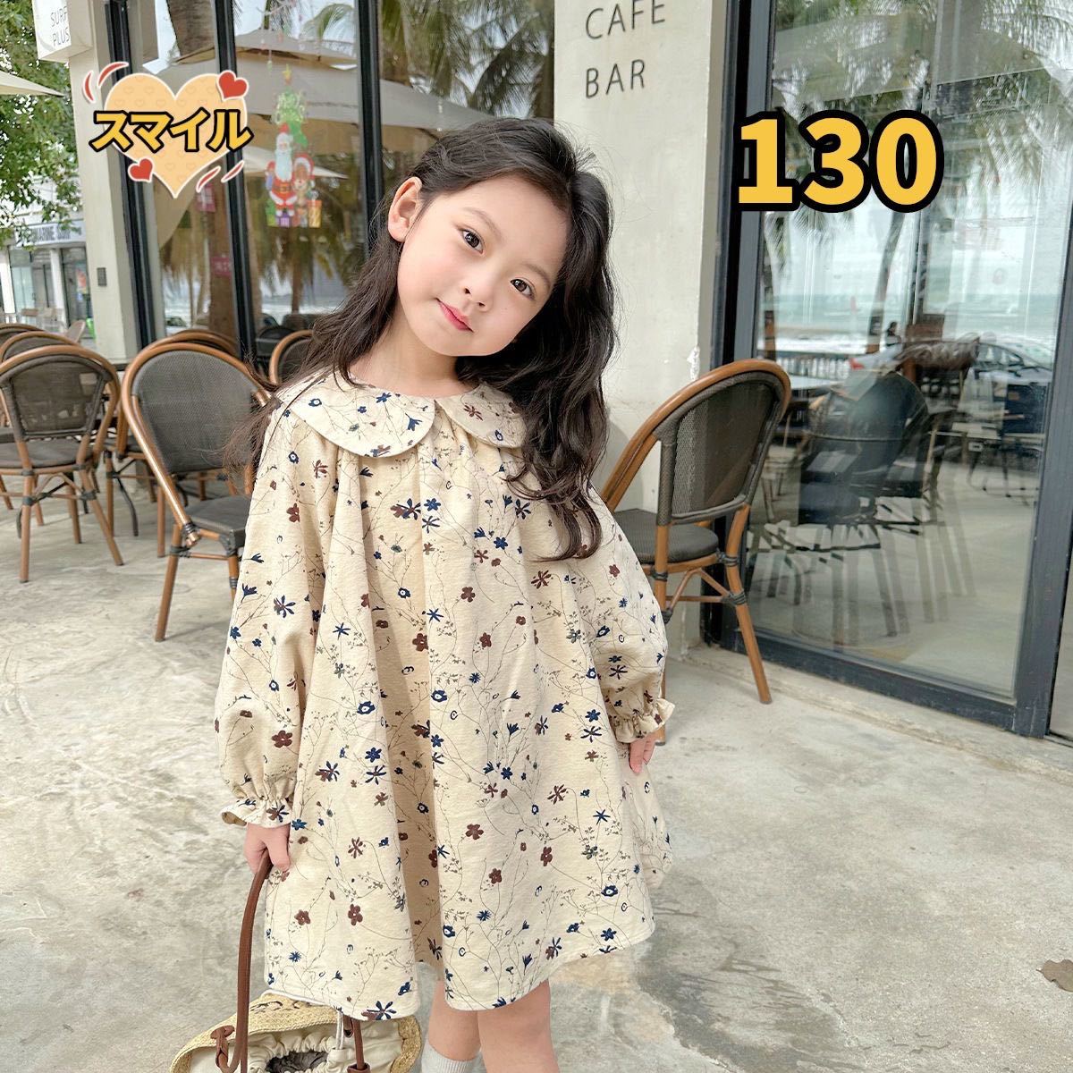 - キッズワンピース 花柄ワンピース ゆったり 綿 長袖 女の子春秋物130
