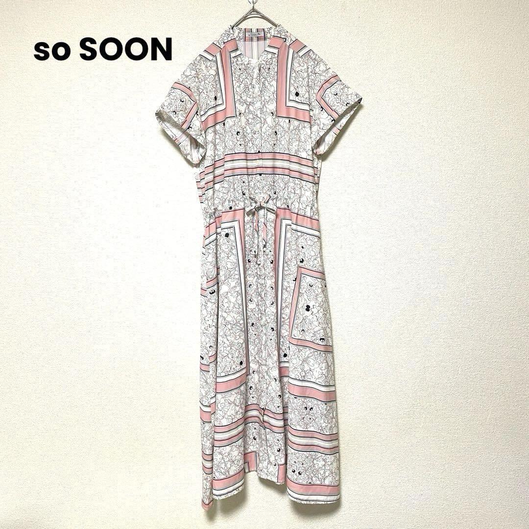 - zo43 sosoon ソースーン/パネルプリントワンピース/総柄ロング白ピンク