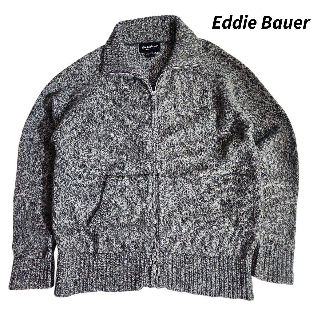 - Eddie Bauer アンゴラ混 ドライバーズニット 表記S 実質M メランジ 緑グリーン系 ジップアップ セーター 84942