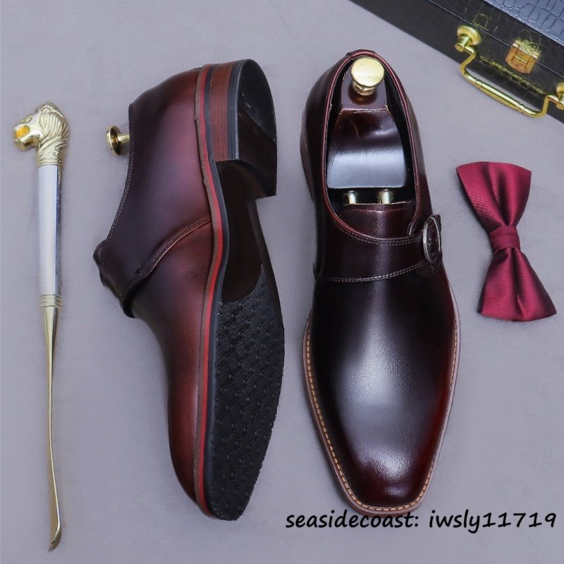 - 定価11万◆メンズ モンクストラップ 最高級 ビジネスシューズ 職人手塗仕上げ 本革 レザーシューズ 天然牛革 紳士靴 革靴 ブラウン 26.0cm