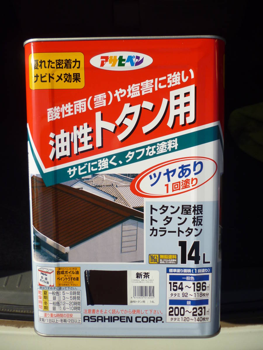- アサヒペン 油性トタン用 14L 新茶 耐久性にすぐれ、酸性雨(雪)や塩害に強いトタン専用塗料です。未開封 未使用 中古扱い