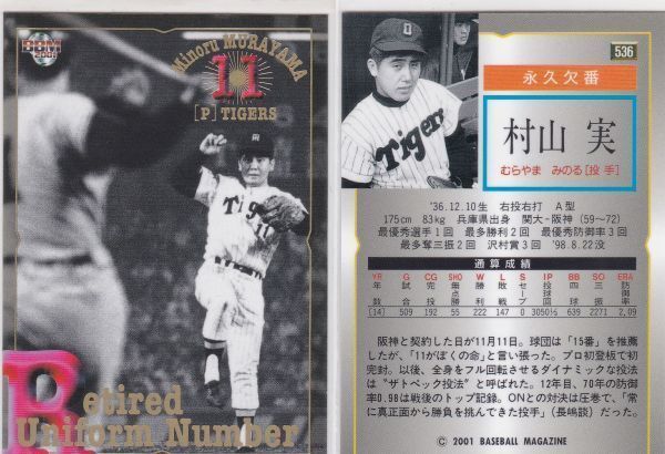 - ●2001BBM 【村山 実】 永久欠番 No.536:阪神 R9