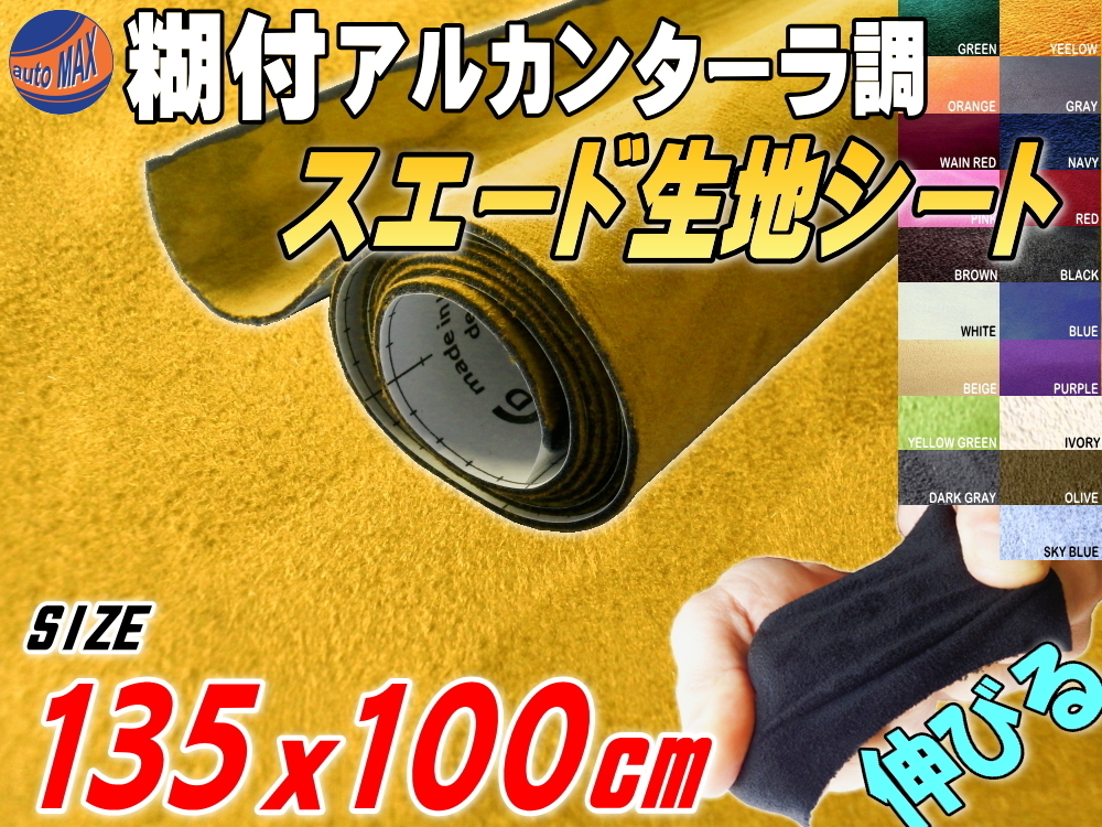 > スエード(大)黄 幅135×100cm伸びるアルカンターラ調スウェード生地スエードシート裏面糊付カッティング可 シート内装ステッカー車 7