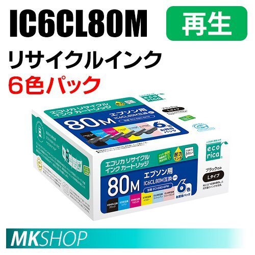 - 送料無料 エプソン用 IC6CL80M リサイクルインクカートリッジ 6色パック エコリカ ECI-E80-6PM (代引不可)