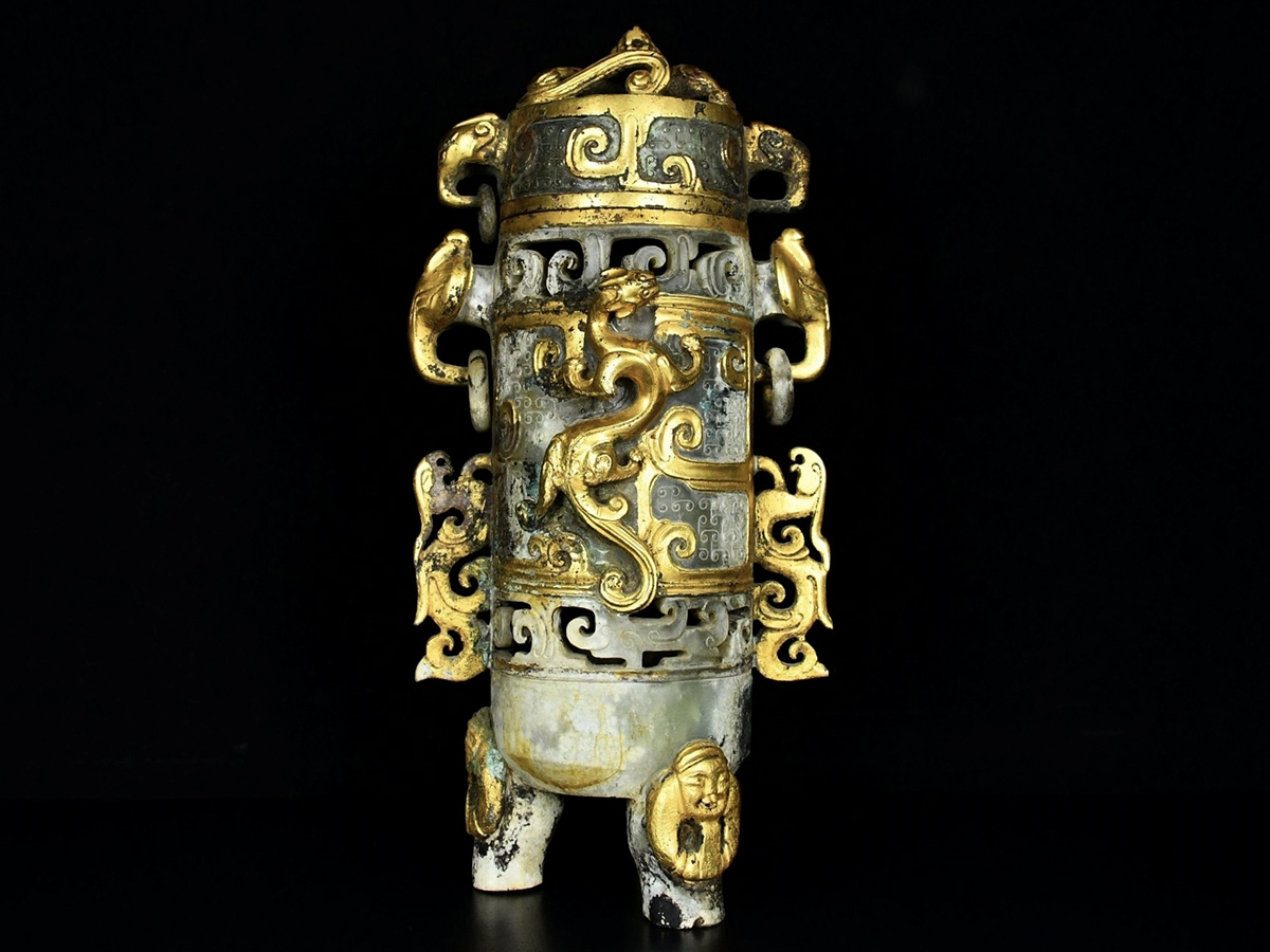 - ▽鴻▽戦漢朝時代 和田玉 高古玉 象嵌金人足龍鳳高瓶 時代物 中国古美術 骨董品