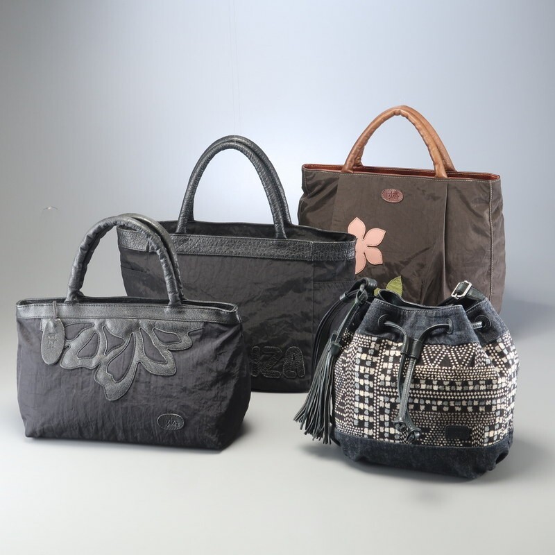 > MI1704△《4点セット》IBIZA イビザ ナイロン/レザー 花柄パッチワーク ハンドバッグ*巾着 ワンショルダーバッグ/バケット/鞄 フリンジ