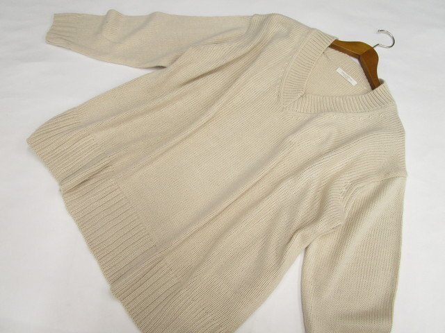 > 美品 ショコラフィネローブ chocol raffine robe ドロップショルダー 長袖 Vネック 洗えるニットセーター F アイボリー