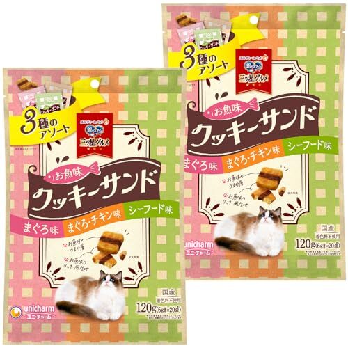- 【まとめ買い】銀のスプーン 猫用 おやつ お魚味クッキーサンド 3種のアソート まぐろ・まぐろチキン・シーフード味 120g(6g×20袋)×2