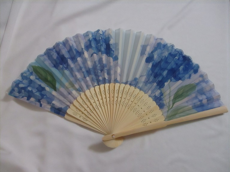 - 送料無料!【 紫陽花 青 あじさい アジサイ 扇子 布タイプ 】21㎝ 天然竹 和 せんす うちわ 浴衣 着物