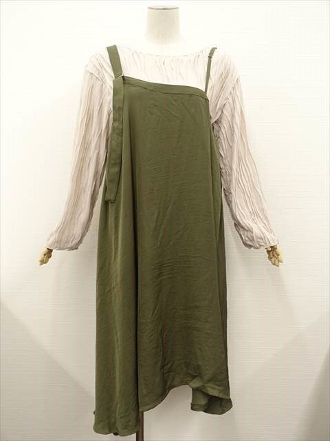 > 美品 remis&GRL ロング丈ショルダーストラップ付きワンピース+長袖カットソー コーデ2点セット M相当 緑/ベージュ カジュアル系 30代~