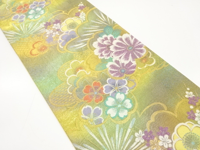 > 美品 桜に菊・笠松模様織り出し 袋帯 (AJAF1K-014)