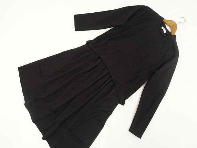 > 大きいサイズ 美品 Gorcre 長袖ハイネックカットソー+ひざ丈フレアスカート 上下2点セット 3XL ブラック