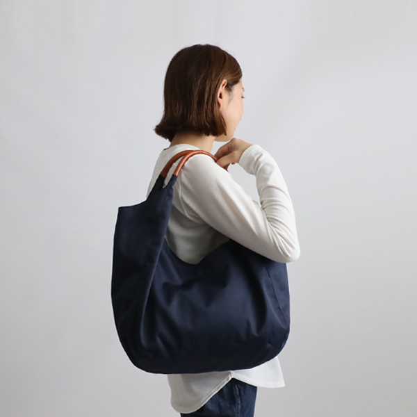 - 送料無料 再制作 軽量ナイロンツイル生地 牛革レザー2wayトートバッグ裏地付 鞄 A4サイズ防水 ネイビー P92A