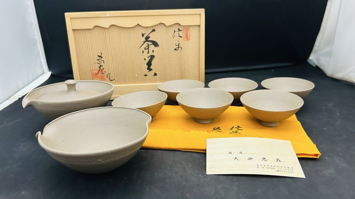 - 未使用 大西忠左作 茶器揃 信楽焼 共箱 煎茶道具 急須湯冷し湯呑み6客 煎茶器