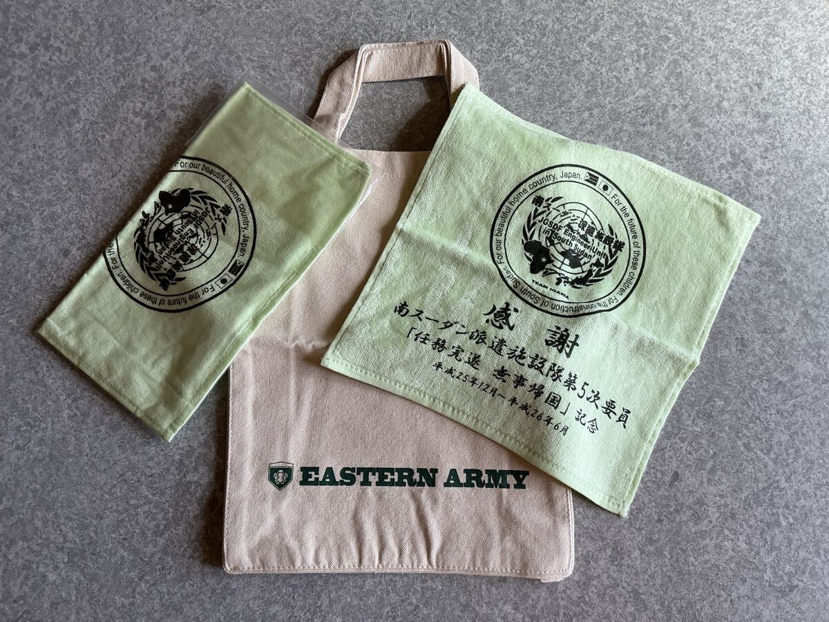 - 自衛隊グッズ 東部方面隊 陸上自衛隊 南スーダン派遣施設隊帰国記念ハンカチ・東部方面隊エコバッグ