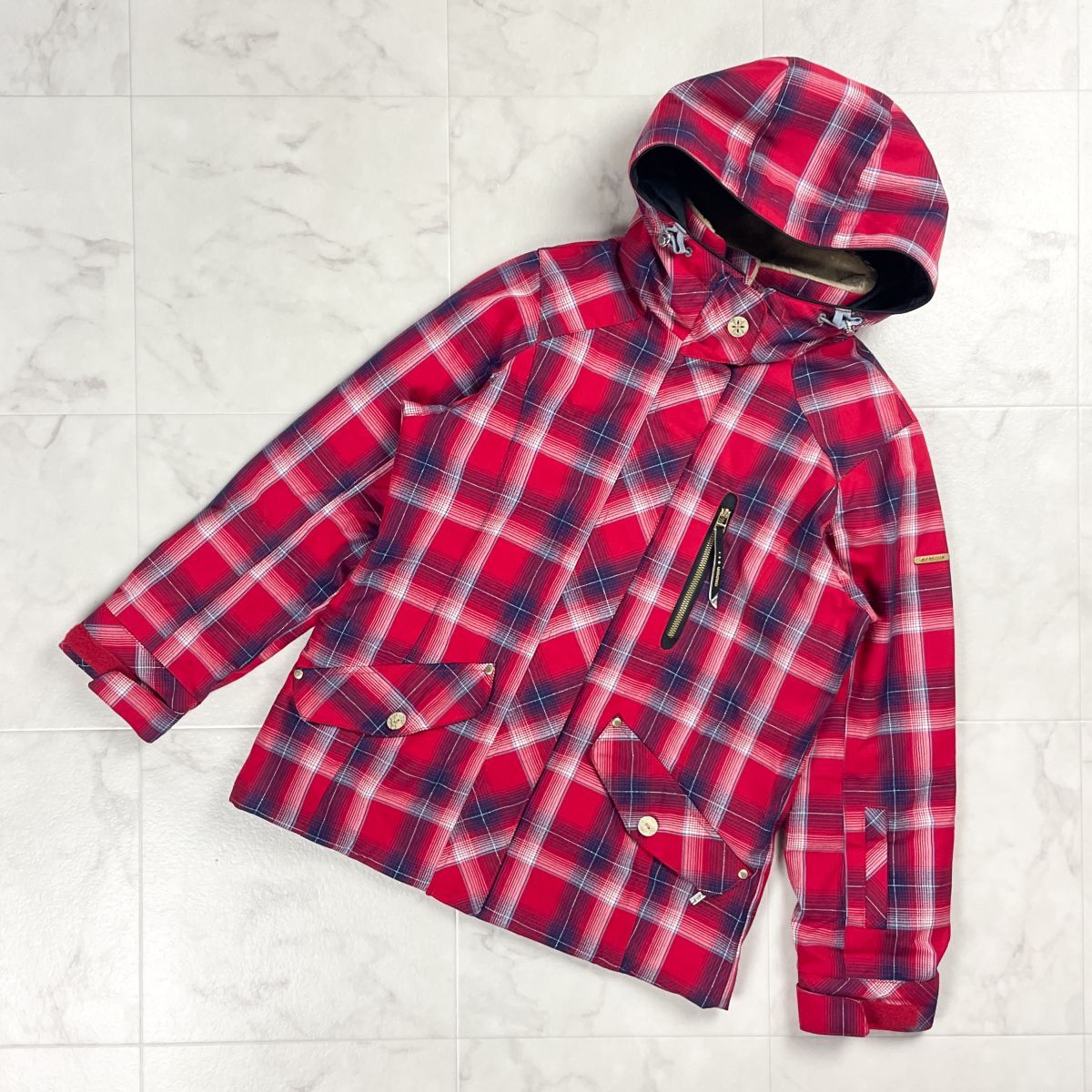 > 美品 GOLD WIN ゴールドウィン チェック柄中綿ジャケット スノーウェア スキー スノーボード レディース 赤 レッド系 サイズM*FD909