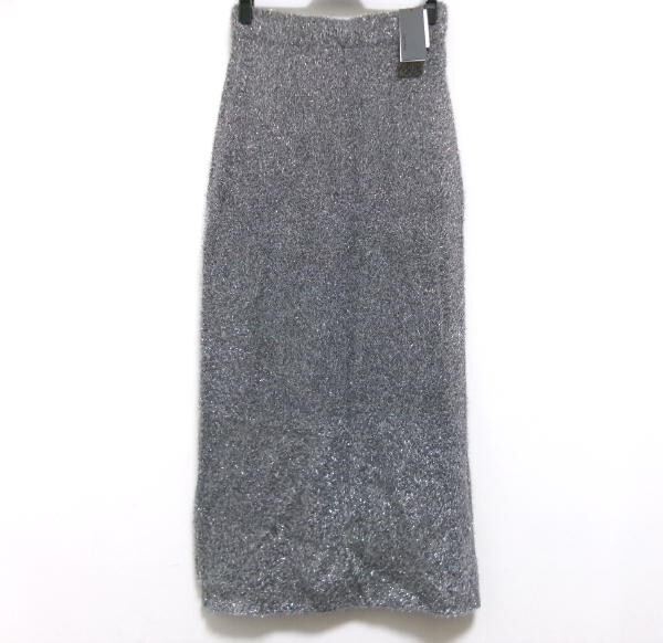 - 新品★uncrave アンクレイヴ★手洗い可 ラメ シャギー ニット スカート★M~L シルバー×チャコール オンワード樫山