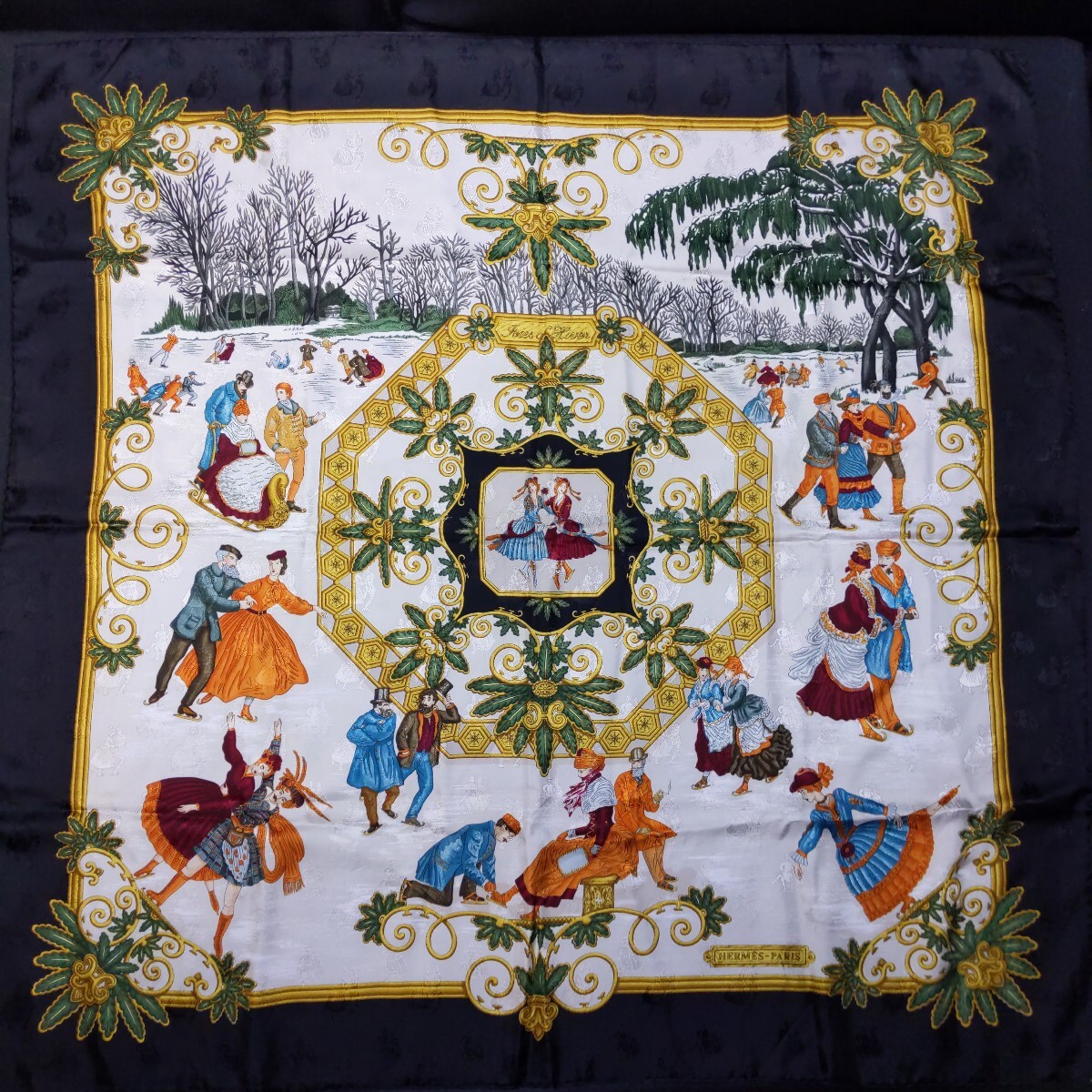 > HERMES エルメス スカーフ 88㎝×90㎝ カレ 90 Joies d’Hiver 冬の愉しみ スカーフ ストール バンダナ 大判 シルク100%=$ 875