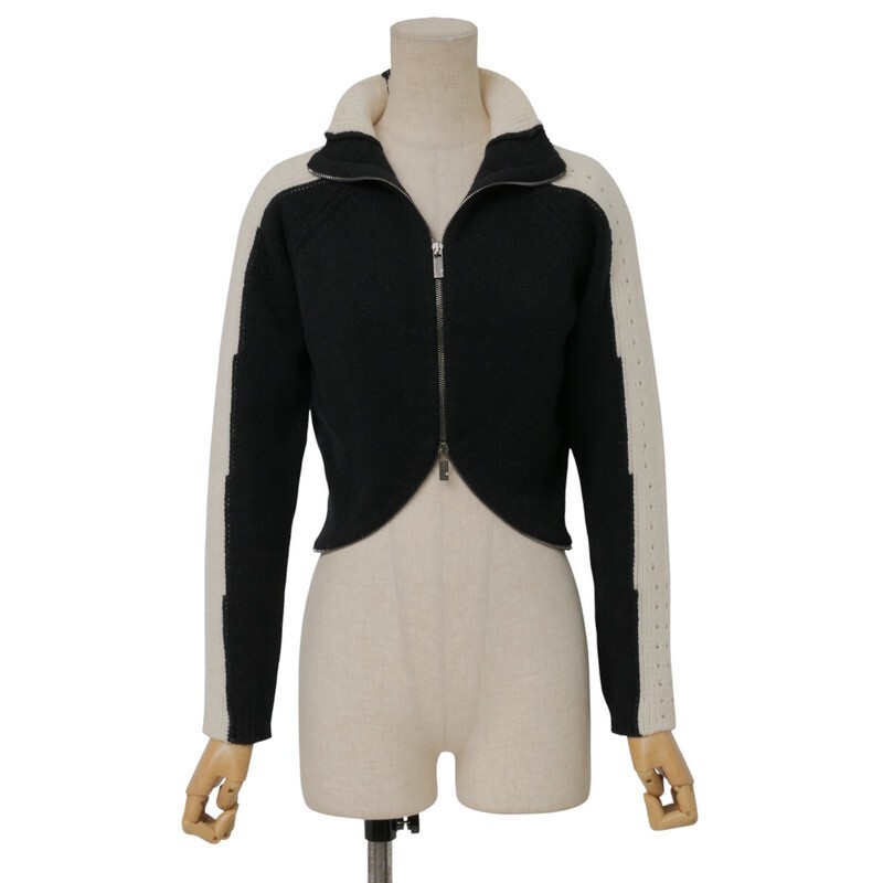 - GS3701〇イタリア製*ブルーガール*ブルマリン*ウールカシミヤ*ハイネック フロントジップ バイカラーニット*I38*ブラック×ホワイト