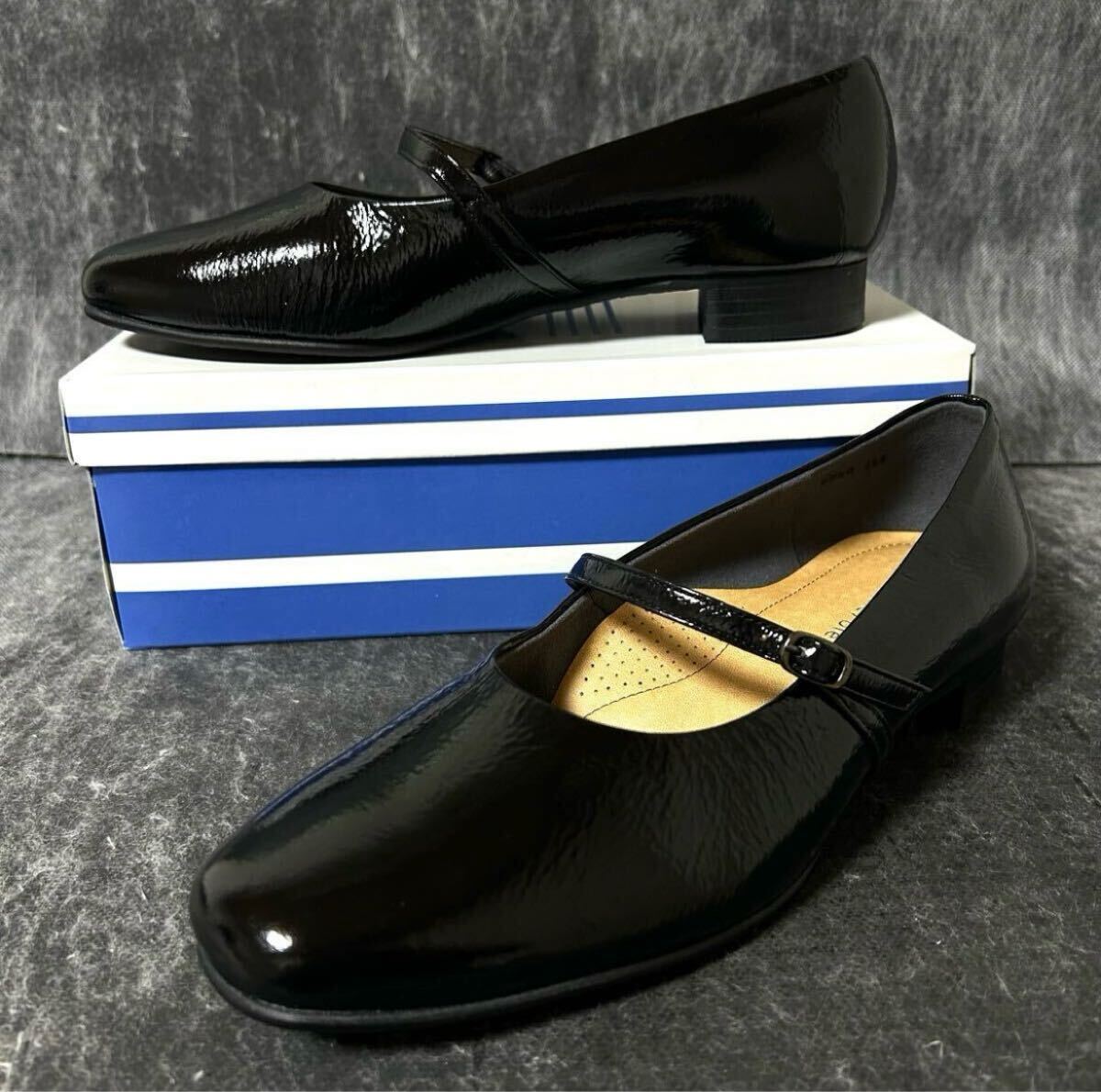 - 【未使用/大きいサイズ】 ¥20,900- blanc/bleu ブランブルー #8350 ストラップパンプス 本革 エナメル レディース size25.5 EEE *2A