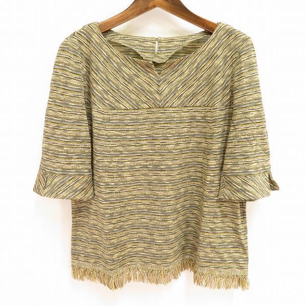 - #snc レリアン Leilian 半袖 カットソー イタリア製生地 13+ 大きいサイズ 紺 ベージュ系 ボーダー フリンジ レディース [912227] k01