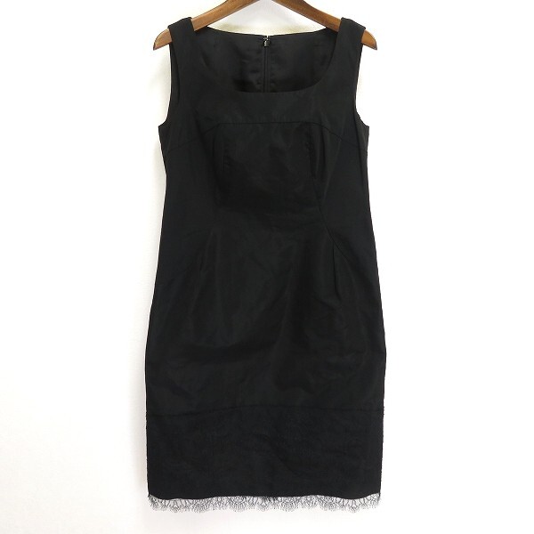 - #a レリアン Leilian ワンピース 7 黒 ブラック ノースリーブ 裾レース 日本製 レディース [963013] k01