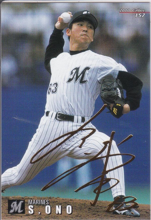 - ●2000カルビー 【小野 晋吾】 プレ版:金箔押サインパラレル No.157:ロッテ R3