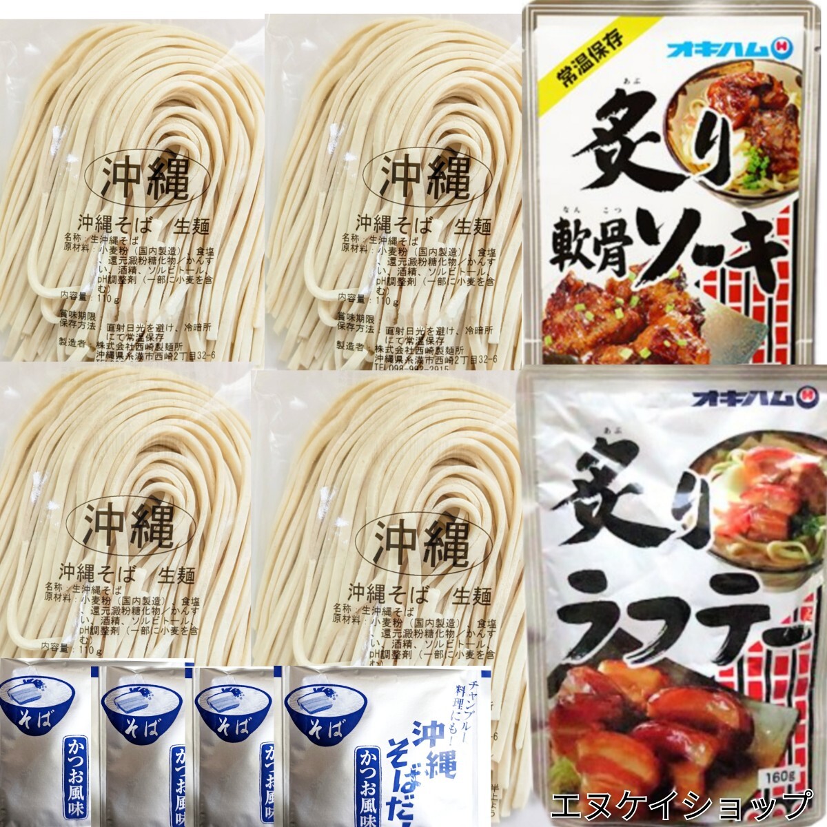 - B55【激安】常温生麺 沖縄そば4人前!炙り軟骨ソーキ1袋、炙りラフテー1袋 オキハム 西崎製麺 送料無料 ※麺の賞味期限2025.12.10以降