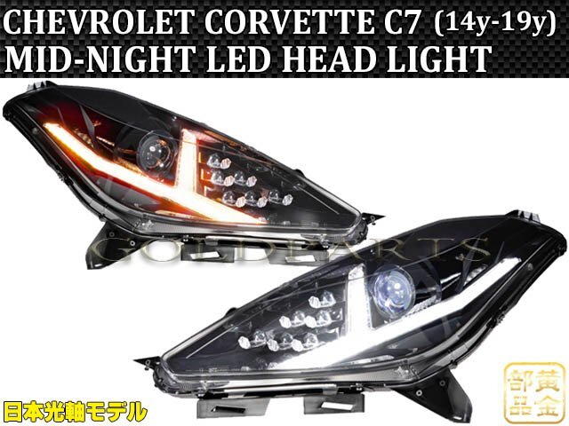 - コルベットC7★保証付き★ フルLEDモデル【特注日本光軸モデル】シボレー コルベットC7 2014y~2019 MID-NIGHT LEDヘッドライト Z06 ZR1