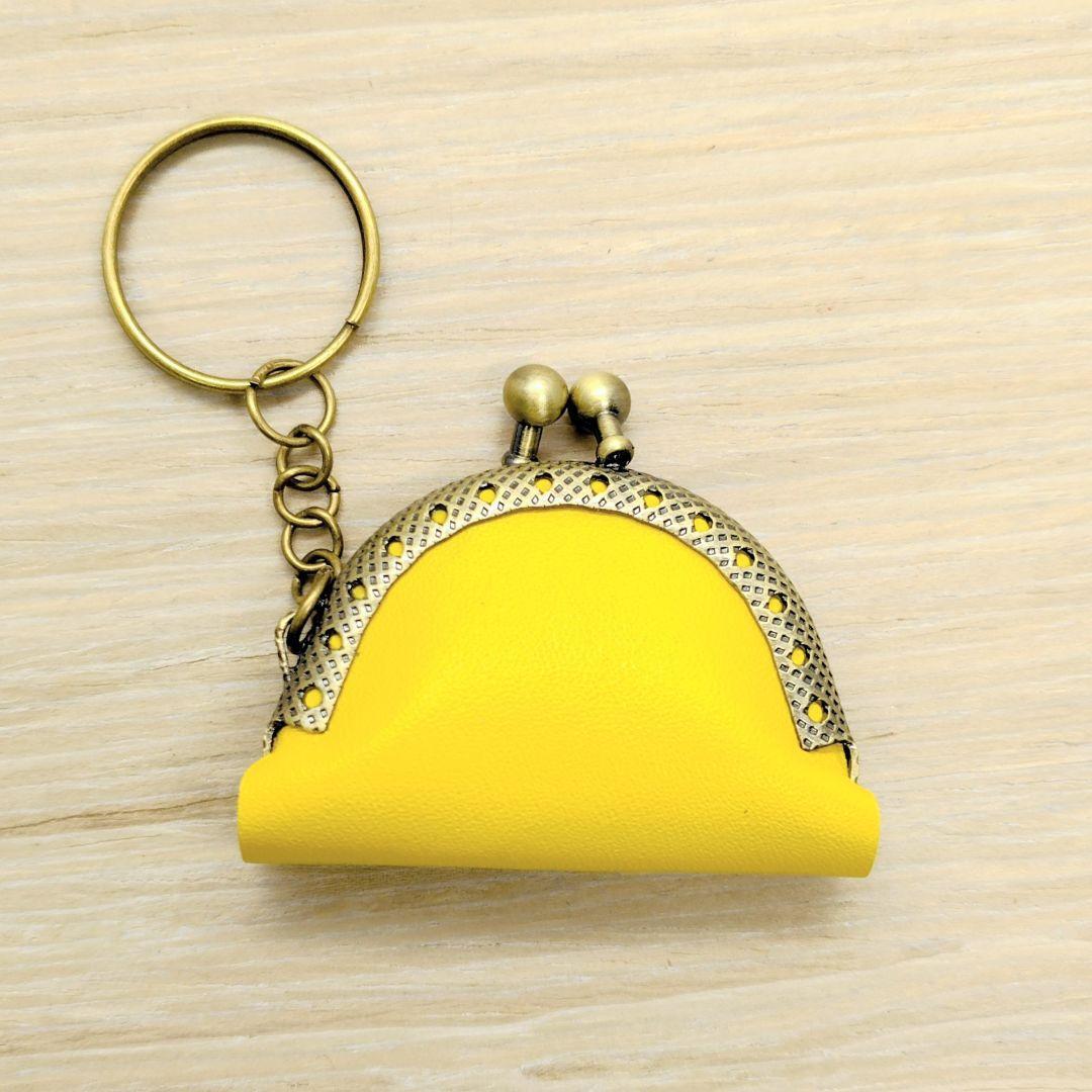 - 小さい 財布 がま口 レモン色 5cm キーホルダー 革レザー コインケース