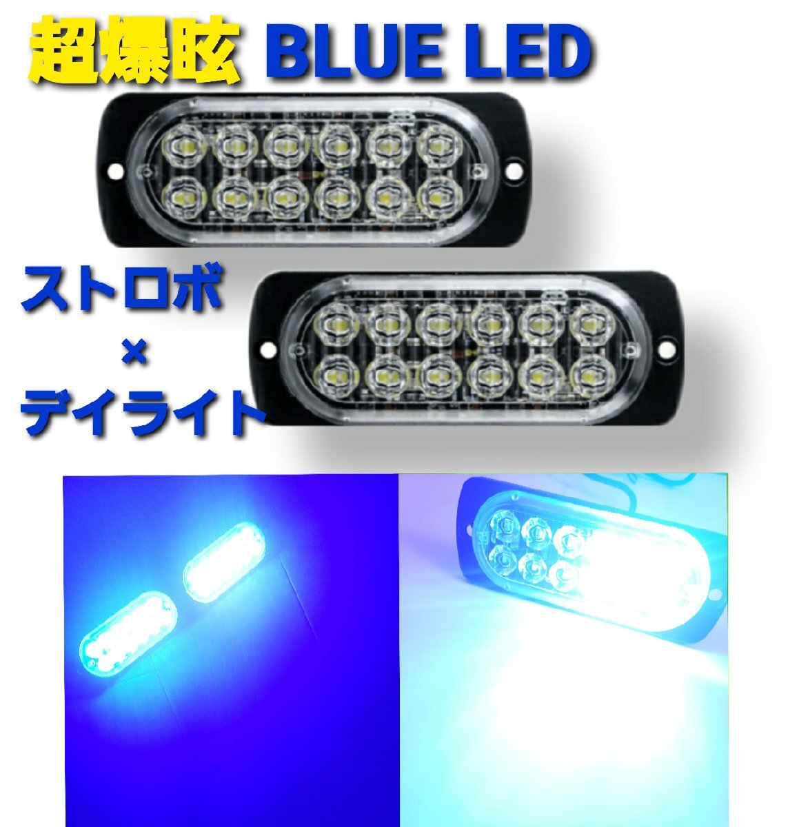 - 超爆眩 12V 24V ハイパワー LED ストロボ フラッシュライト ストロボライト デイライト 車 バイク トラック ブルー青 Bスト