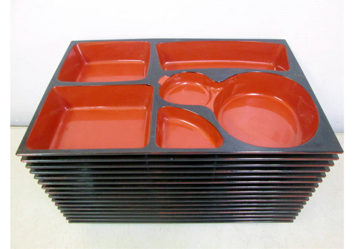 - 《510022》幕の内弁当箱 / 朱天黒 外寸約35.5×23.5×4cm【仕切りのみ 16点】松花堂弁当 料亭 割烹 仕出し