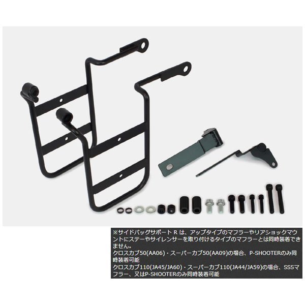 ※サイドバッグサポート 右は、アップタイプのマフラーやリアショックマウントにステーやサイレンサーを取り付けるタイプのマフラーとは同時装着できません。