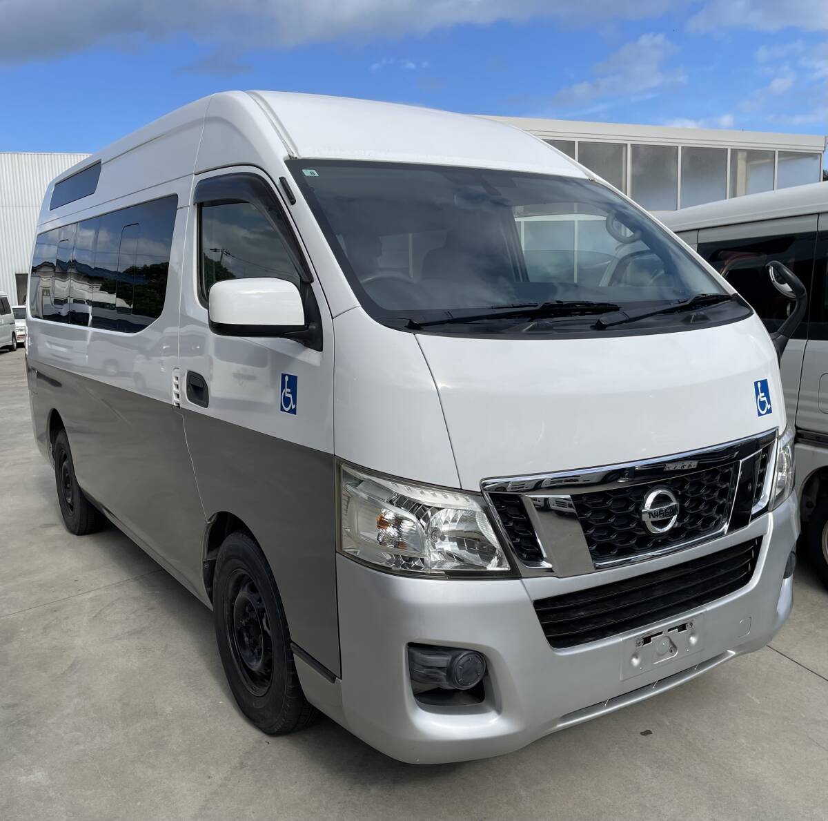 - NV350キャラバン ツートンカラー ガソリン 福祉車両 チェアキャブ 車いす移動車 ハイルーフ トランポ パワーゲート ウェルキャブ