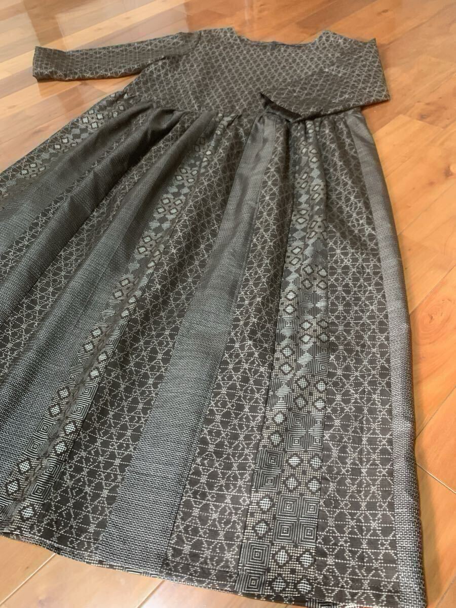 - ★着物リメイク☆大島紬ウエスト切り替えワンピース3種類の大島紬で26枚剥ぎのパッチスカート