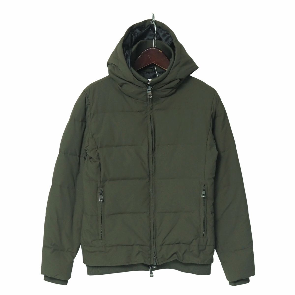 - TI9453▽AKM/エイケイエム*メンズS*ナイロン*フーデッド ダウンジャケット/ジップアップブルゾン*スタンドカラー*モスグリーン系