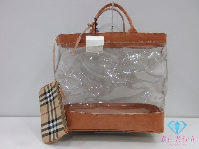 > バーバリー BURBERRY ノバチェック クリア トートバッグ ハンドバッグ ポーチ 付 ブラウン ノバ チェック ビニール PVC【中古】 bk10172