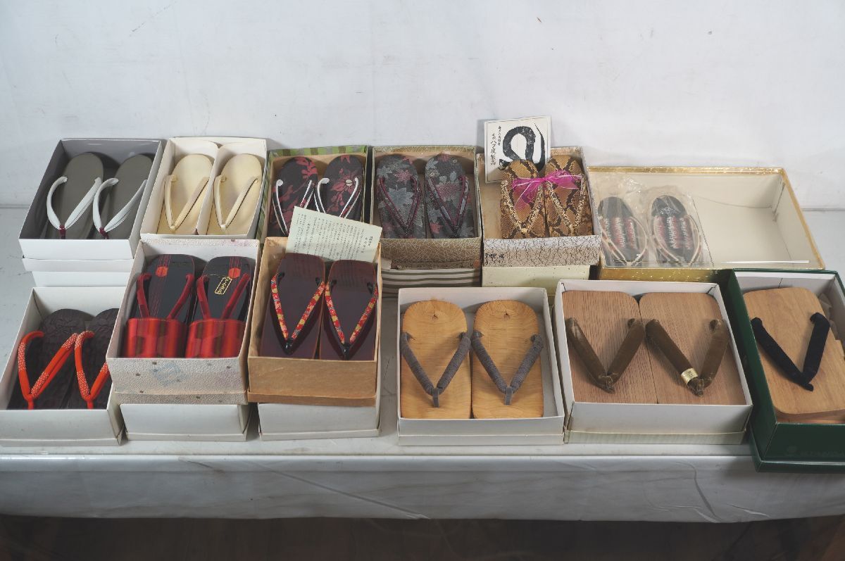 > [10-75] 御履物 おはきもの 草履 下駄 まとめ 奄美大島 毒蛇 ハブ皮 飛騨春慶 キンワシ印 ぜん屋 やよい志ぐれ 和装小物 着物 呉服 現状品