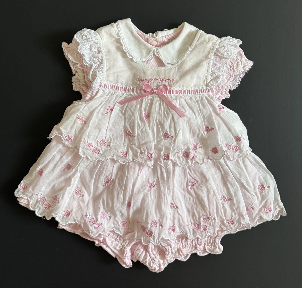> mezzo piano メゾピアノ 80cm セットアップ 未使用難あり ワンピース/エプロン/ブルマーの3点セット