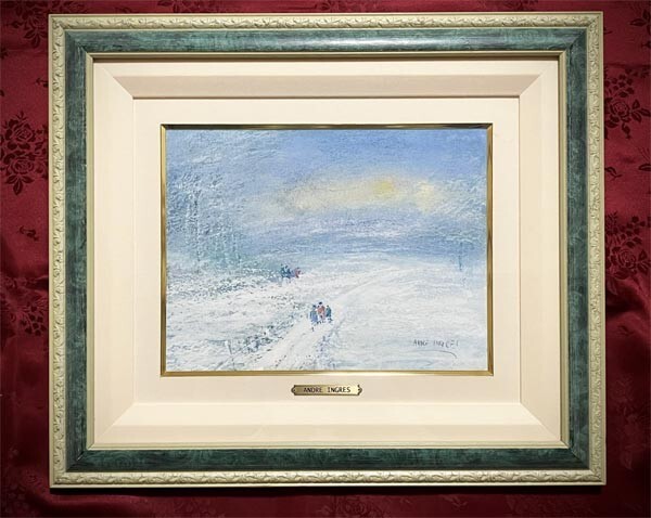 > アンドレ・アングル(Andre lngres)●真作●パステル画 肉筆原画 直筆サインあり■1938年フランス出身の風景画■雪景色のような美しい景色